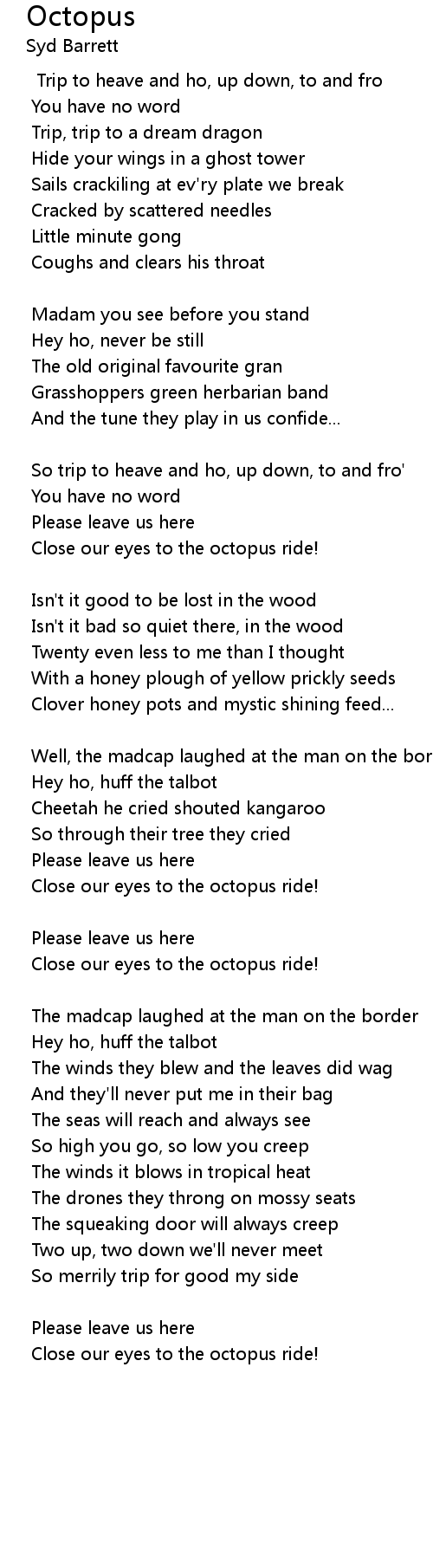 [ Lyrics from: http://www.lyricsfreak.com/s/syd+barret/octopus_20134760.html ]