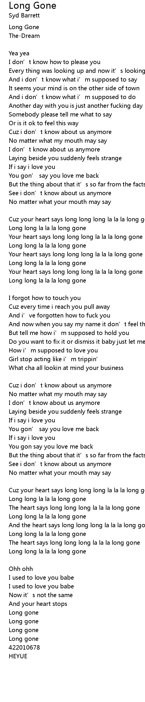 | Cuz your heart says long long long la la la long gone | |