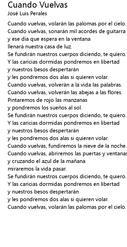 | Cuando vuelvas, volara n las palomas por el cielo. |