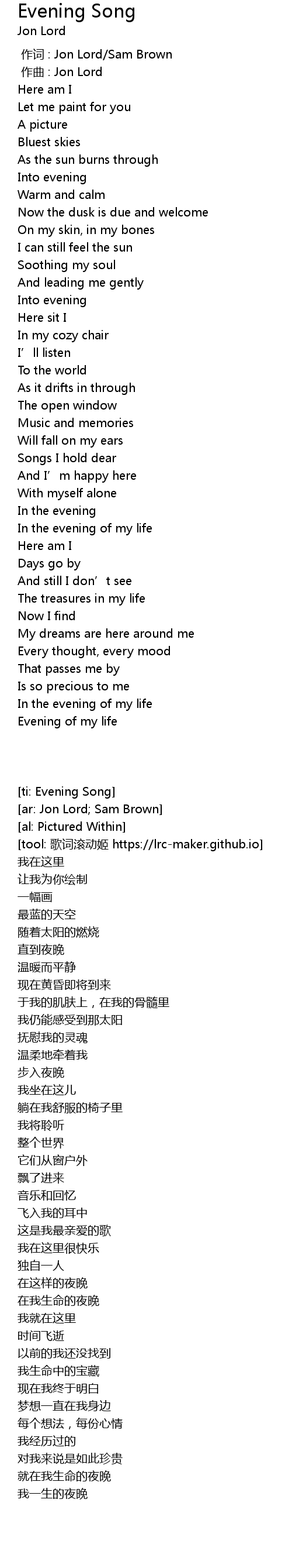 | [00:00.000] | zuò cí : Jon Lord Sam Brown |