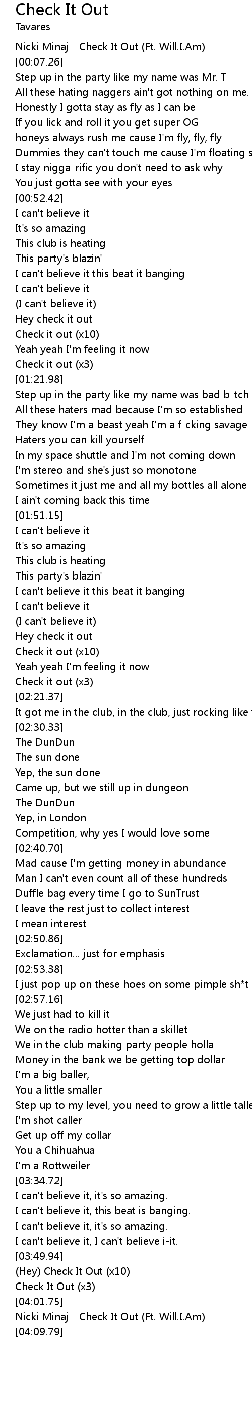[04:07.17] Nicki Minaj - Check It Out (Ft. Will.I.Am)