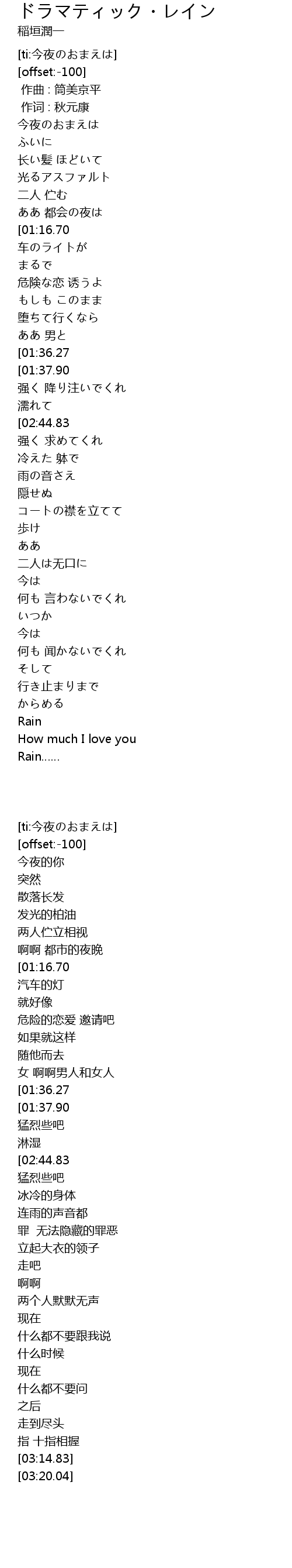 | [01:21.13][01:36.27][02:34.59][02:49.53] | レイン |