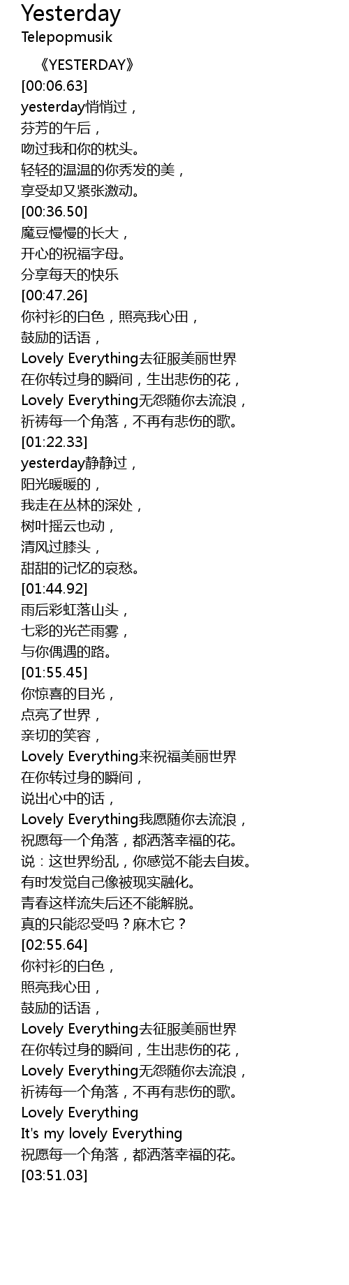 | [03:38.72] | Lovely Everything |