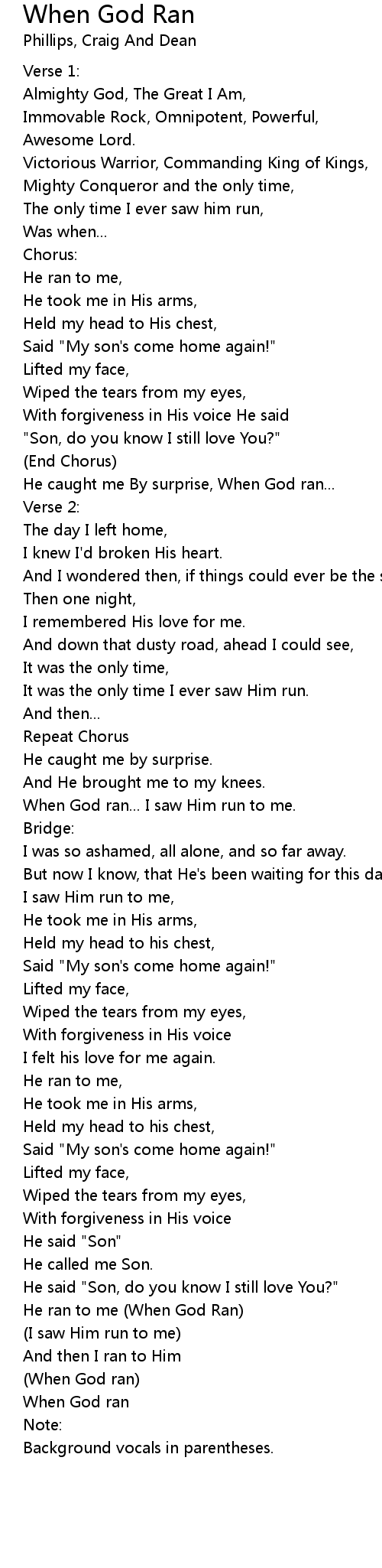 He ran to me (When God Ran) |