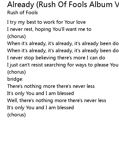 | 歌曲 | Already (Rush Of Fools Album Version) |