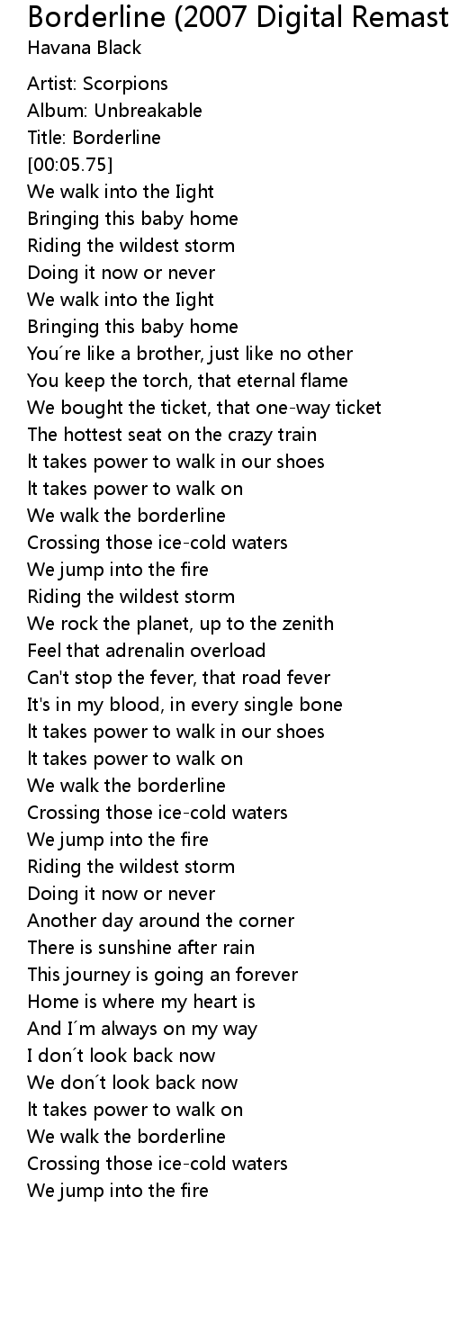 | 歌曲 | Borderline (2007 Digital Remaster) |
