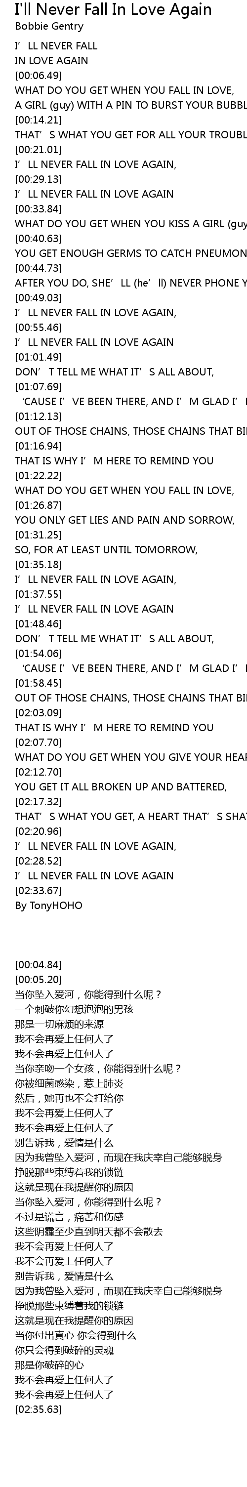 | [02:35.63] | By TonyHOHO |