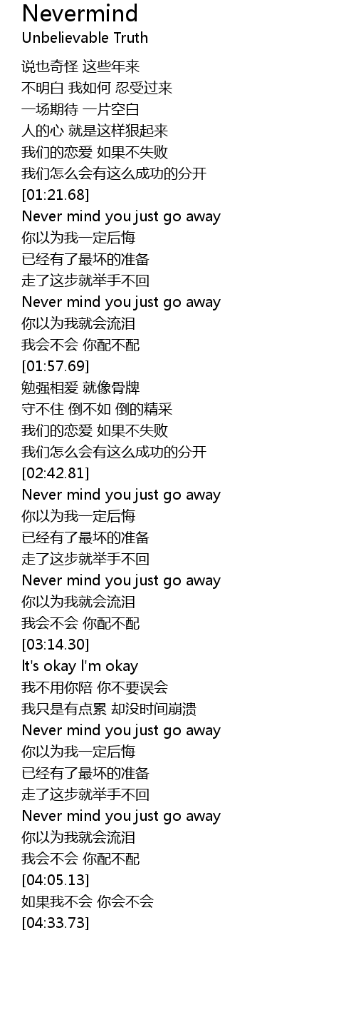 | [03:47.36] | Never mind you just go away |