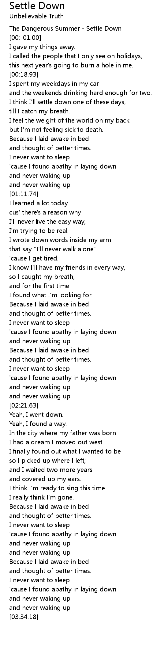 The Dangerous Summer - Settle Down |