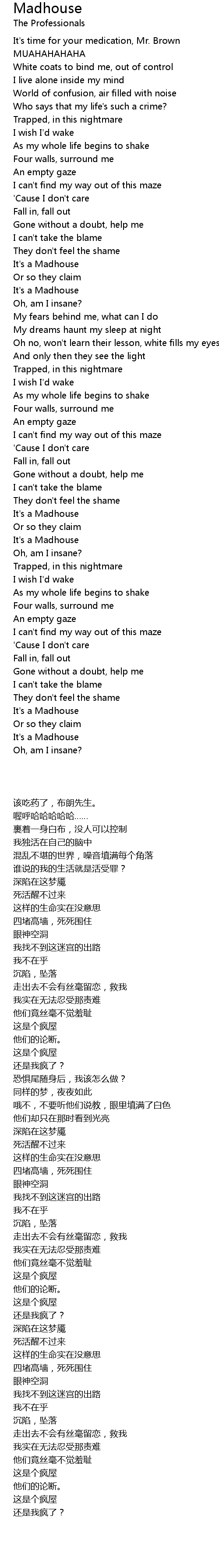 White coats to bind me, out of control |