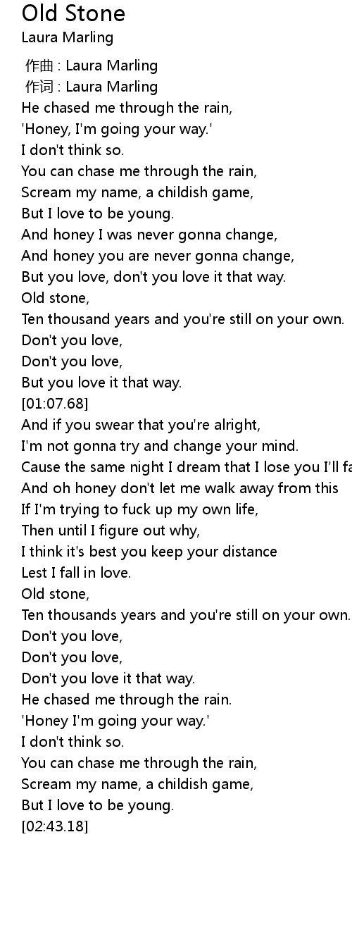 | [00:51.52] | Old stone, |