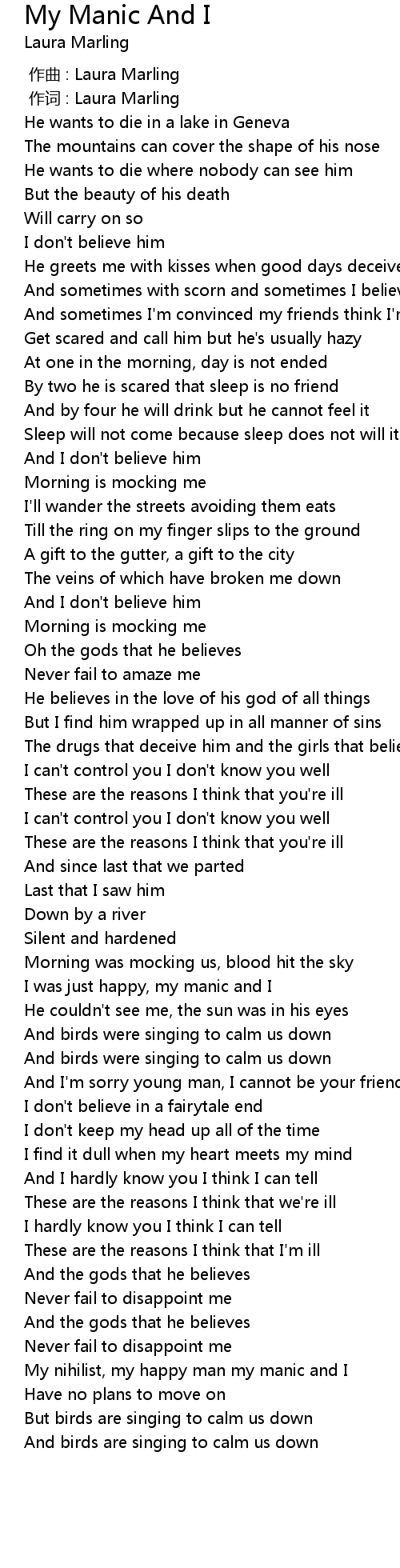 | [03:17.65] | My nihilist, my happy man my manic and I |