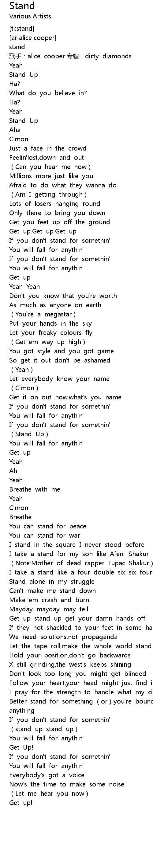 | [03:00.305] | Better stand for something (or)you're bound to fall for anything |