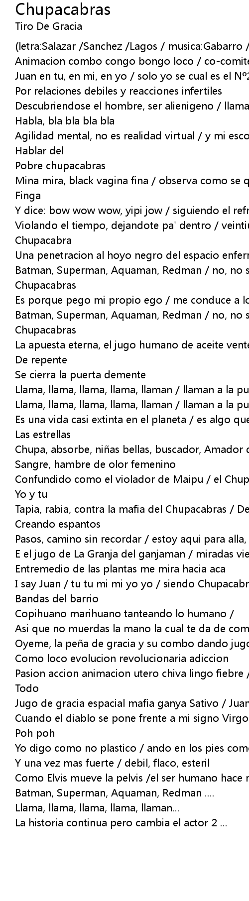 | I say Juan / tu tu mi mi yo yo / siendo Chupacabras la hinchada de | |