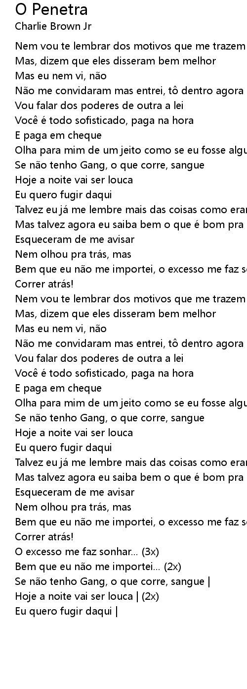 | Nem vou te lembrar dos motivos que me trazem ate aqui | |