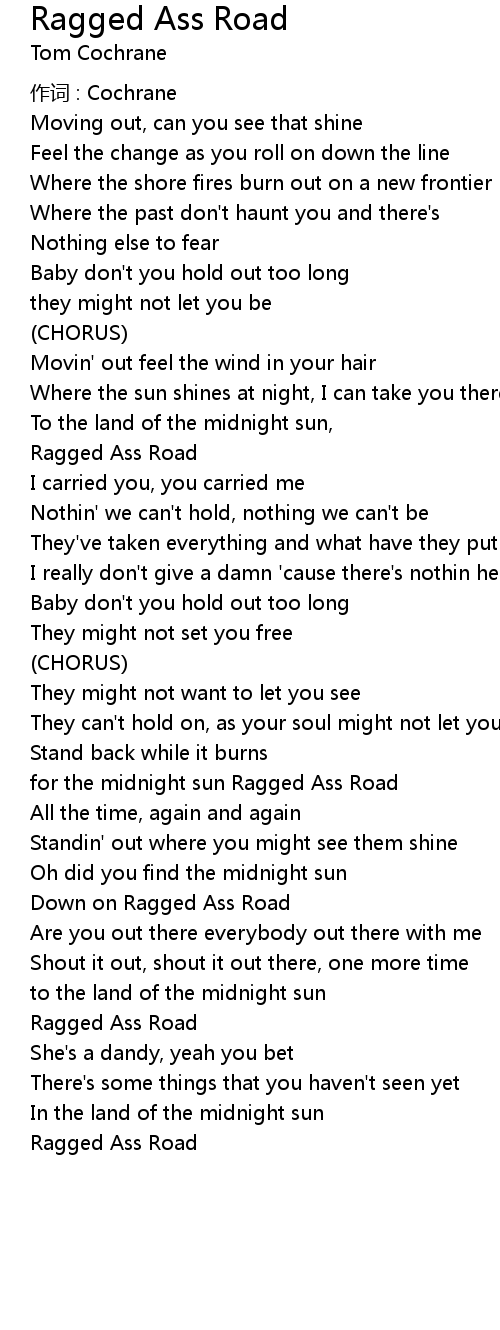 | for the midnight sun Ragged Ass Road | |