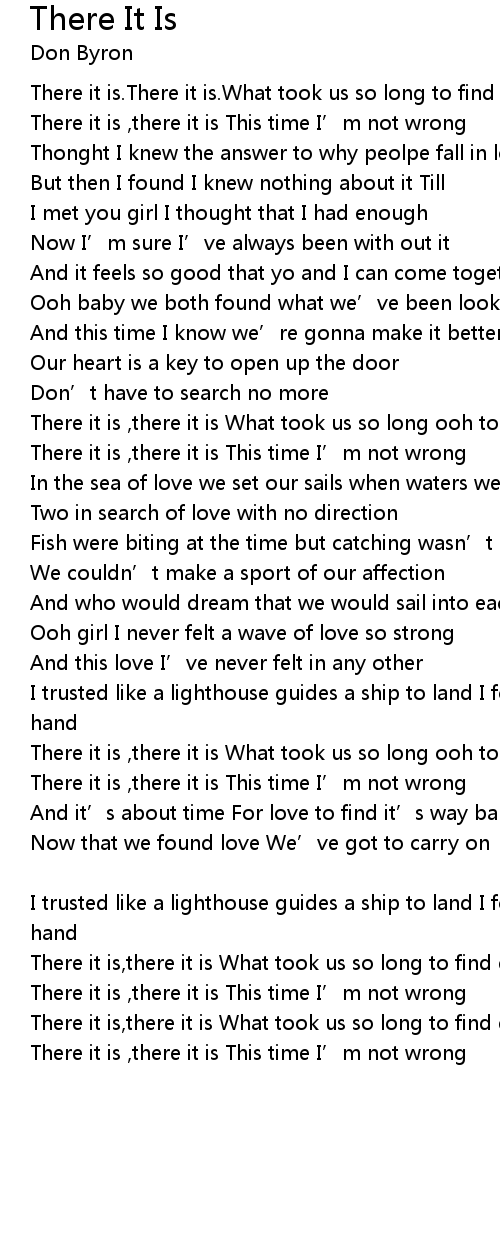 | There it is ,there it is What took us so long ooh to find each other baby | |
