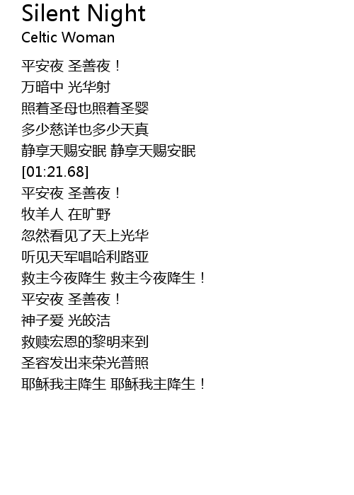 | [01:23.88] | 平安夜 圣善夜! |