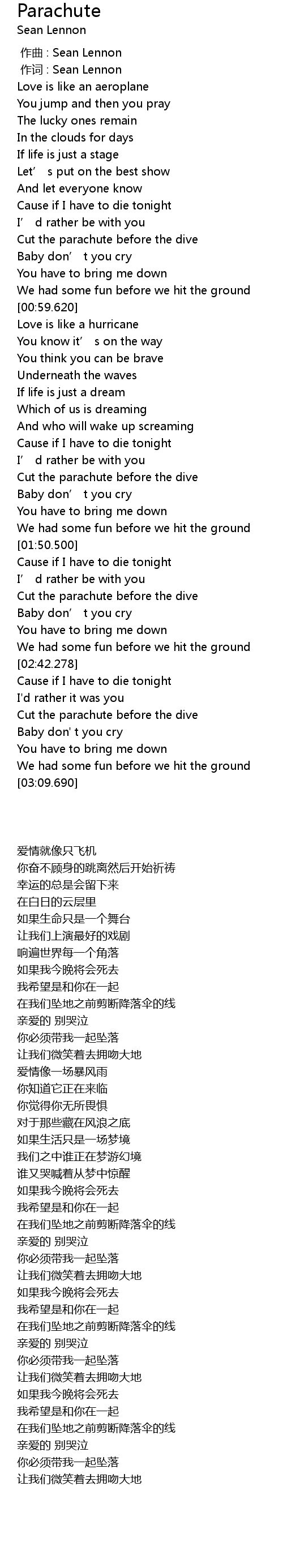 | [00:43.300] | 在我们坠地之前剪断降落伞的线 |