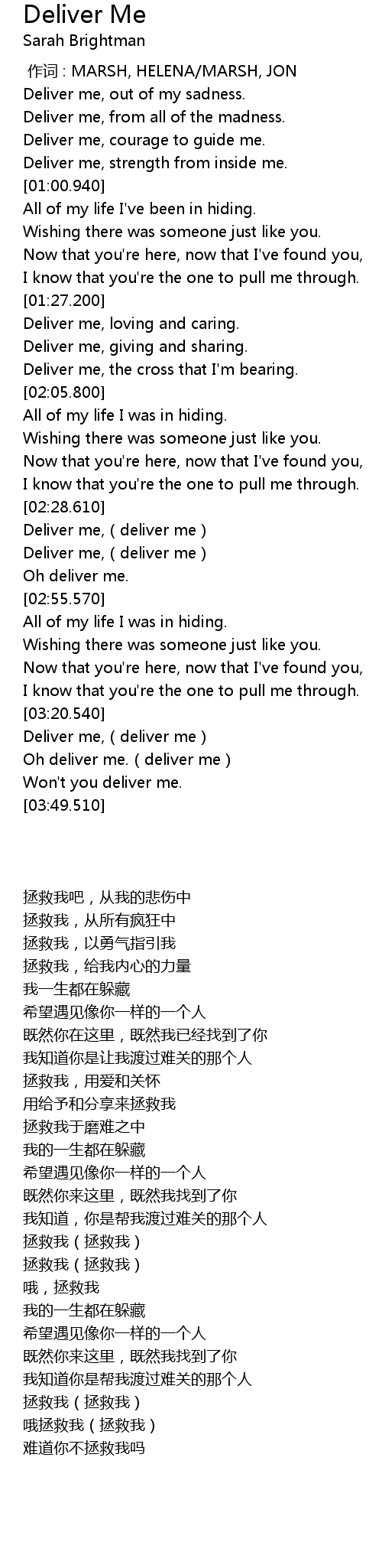 | [03:33.320] | Oh deliver me.(deliver me) |