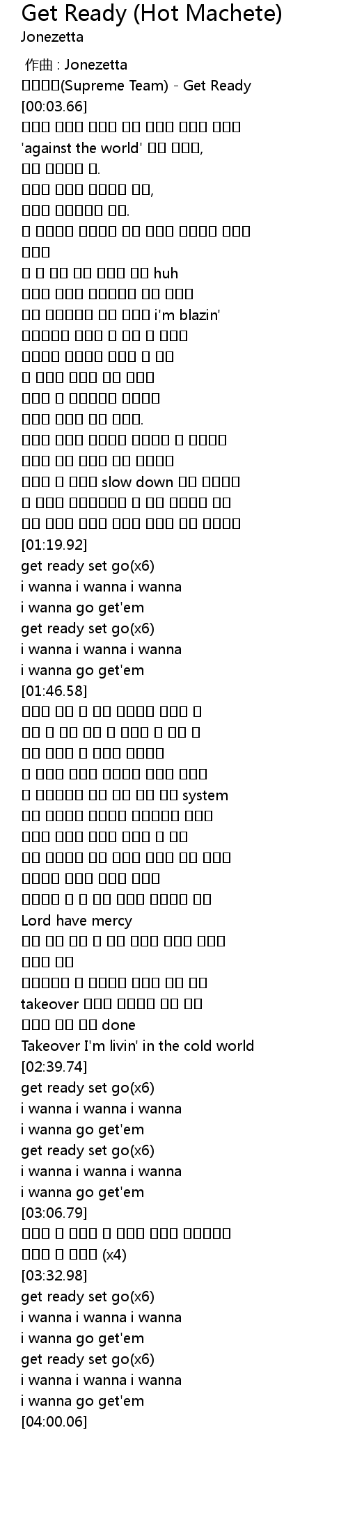 | [03:33.42] | get ready set go(x6) |