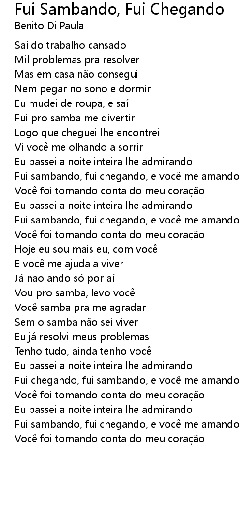 | 歌曲 | Fui Sambando, Fui Chegando |