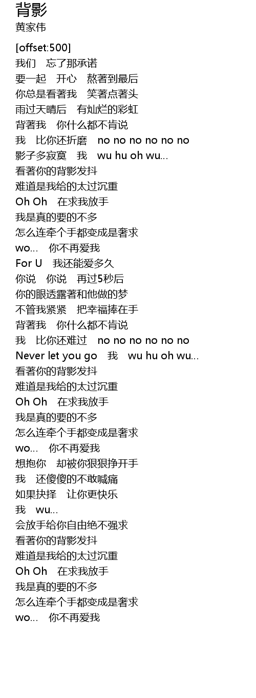 | [02:45.89] | Never let you go 我 wu hu oh wu… |