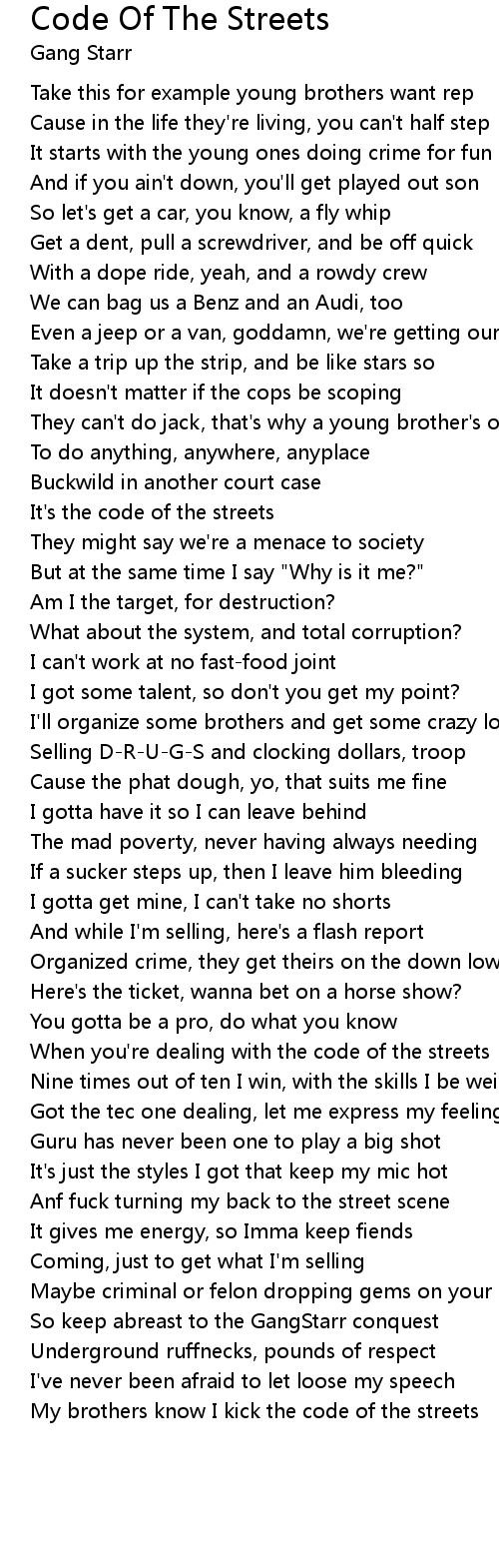 My brothers know I kick the code of the streets |