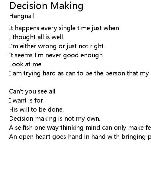 | Decision making is not my own. | |