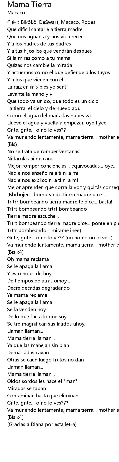 | Va muriendo lentamente, mama tierra... mother earth | |