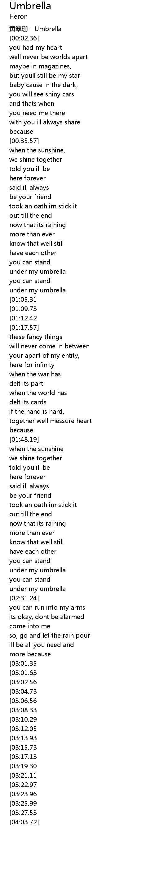 | [00:01.12] | 黄翠珊 - Umbrella |