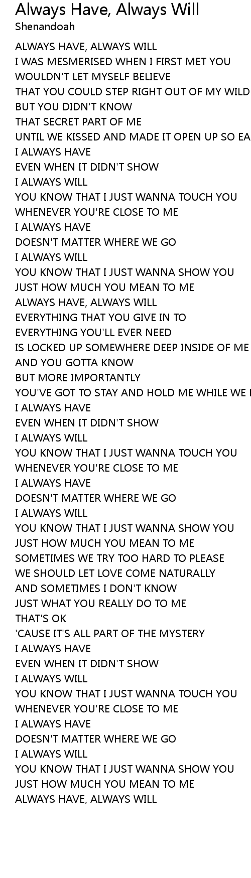 ALWAYS HAVE, ALWAYS WILL |