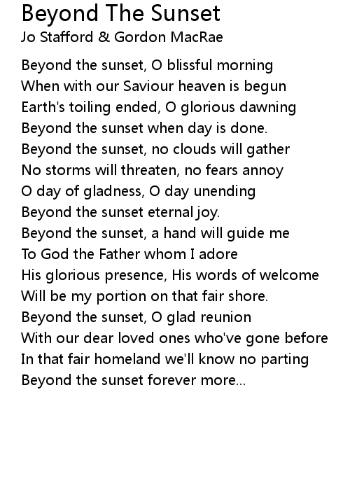 Beyond The Sunset 歌词