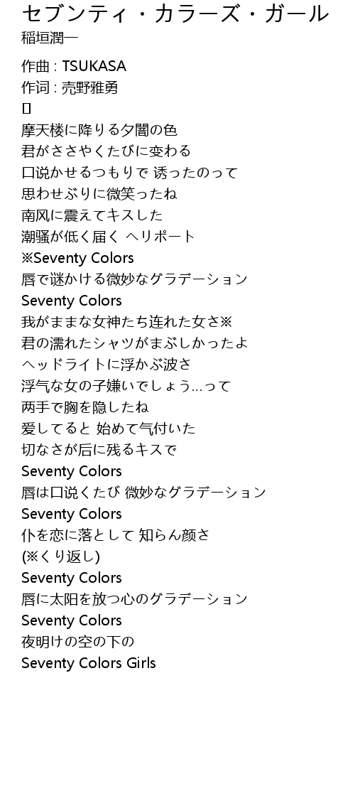 | 歌曲 | セブンティ・カラーズ・ガール |