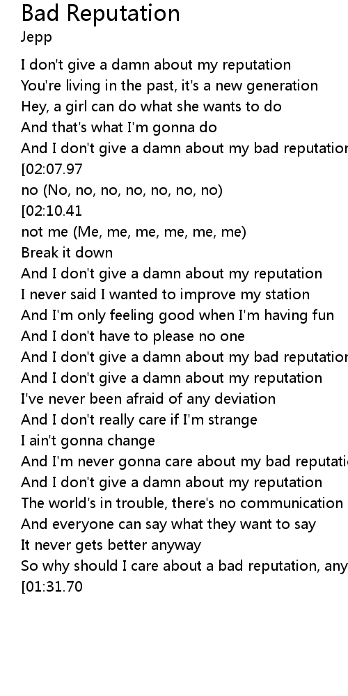 | [01:54.00] | So why should I care about a bad reputation, anyway |