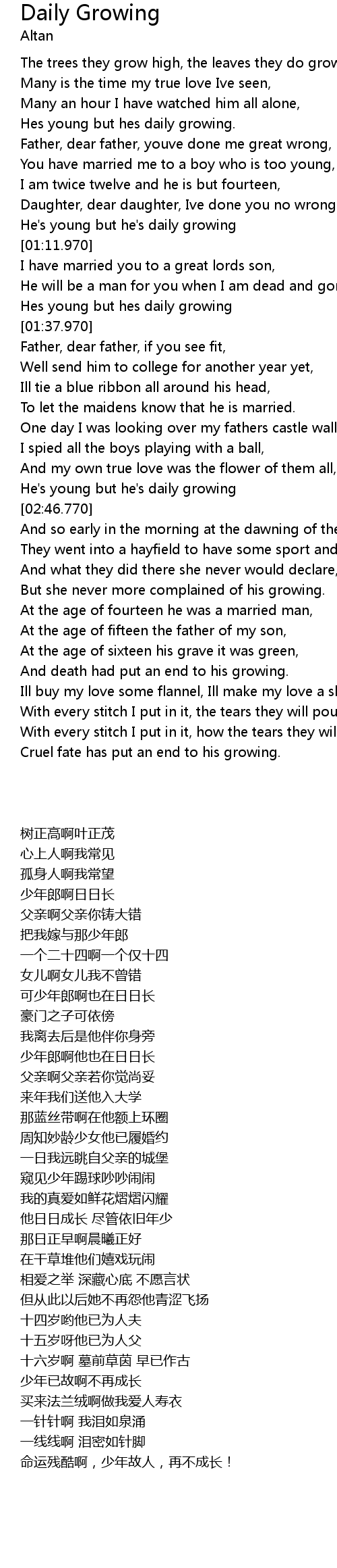 Daughter, dear daughter, Ive done you no wrong, |