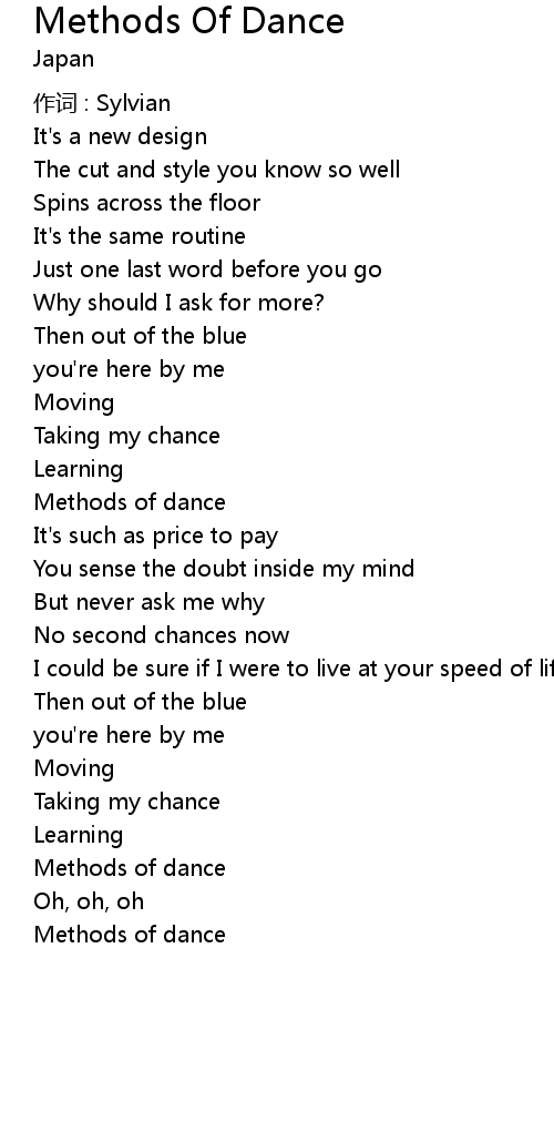 | 歌曲 | Methods Of Dance |