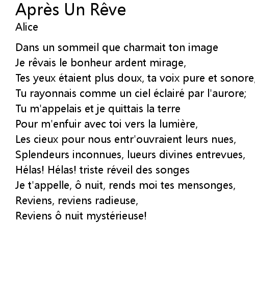| 歌曲 | Après Un Rêve |