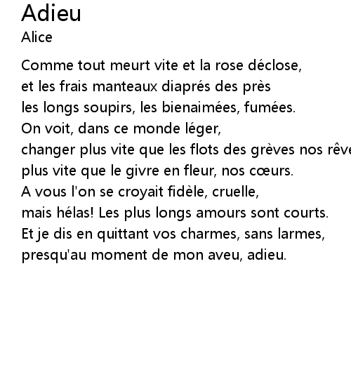 | Et je dis en quittant vos charmes, sans larmes, | |
