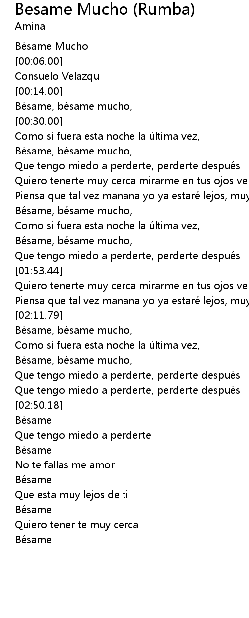 | [02:28.69] | Bésame, bésame mucho, |