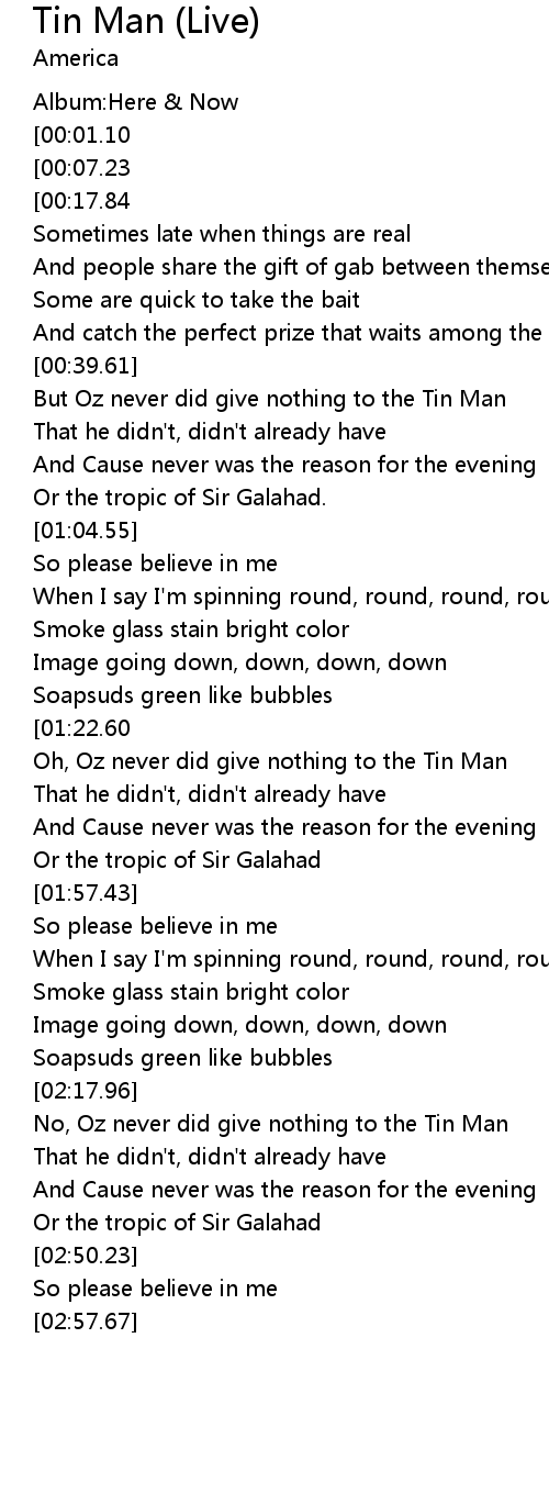 | [02:59.74][00:01.10] | AmericaTin Man Live |