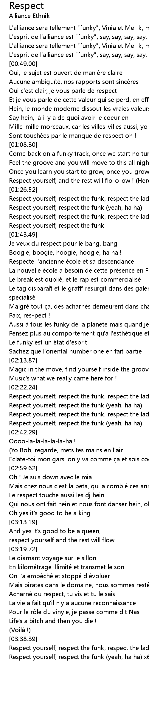 | [03:38.54] | Respect yourself, respect the funk, respect the ladies |