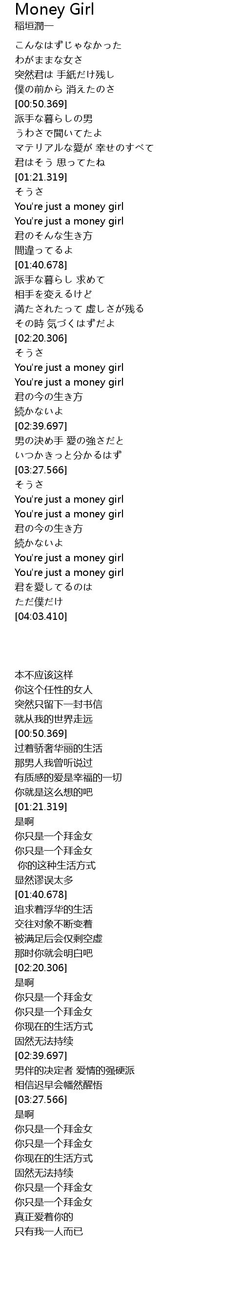 | [03:30.628] | You' re just a money girl |