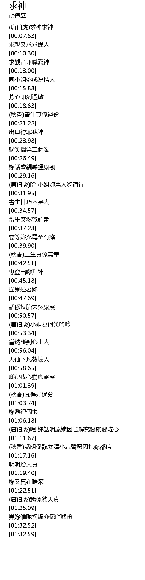 | [00:05.01] | (唐伯虎)求神求神 |