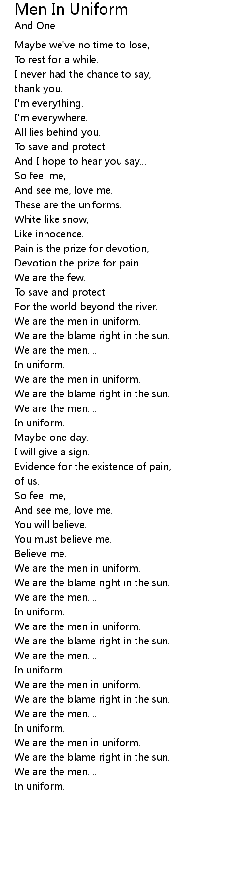 Men In Uniform 歌词