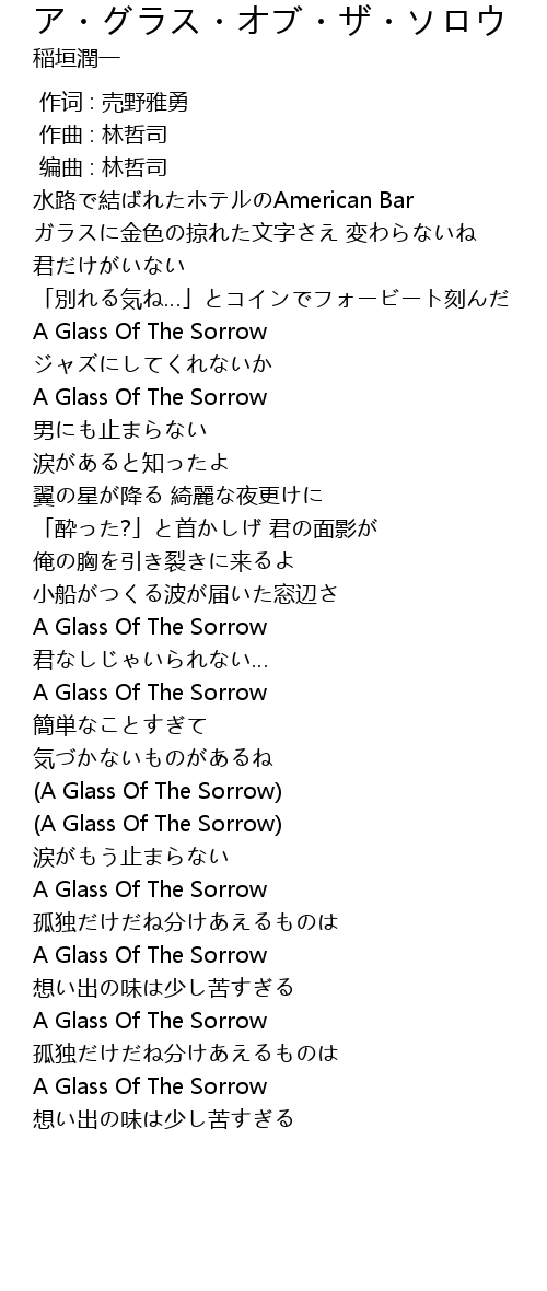 | [03:04.725] | A Glass Of The Sorrow |