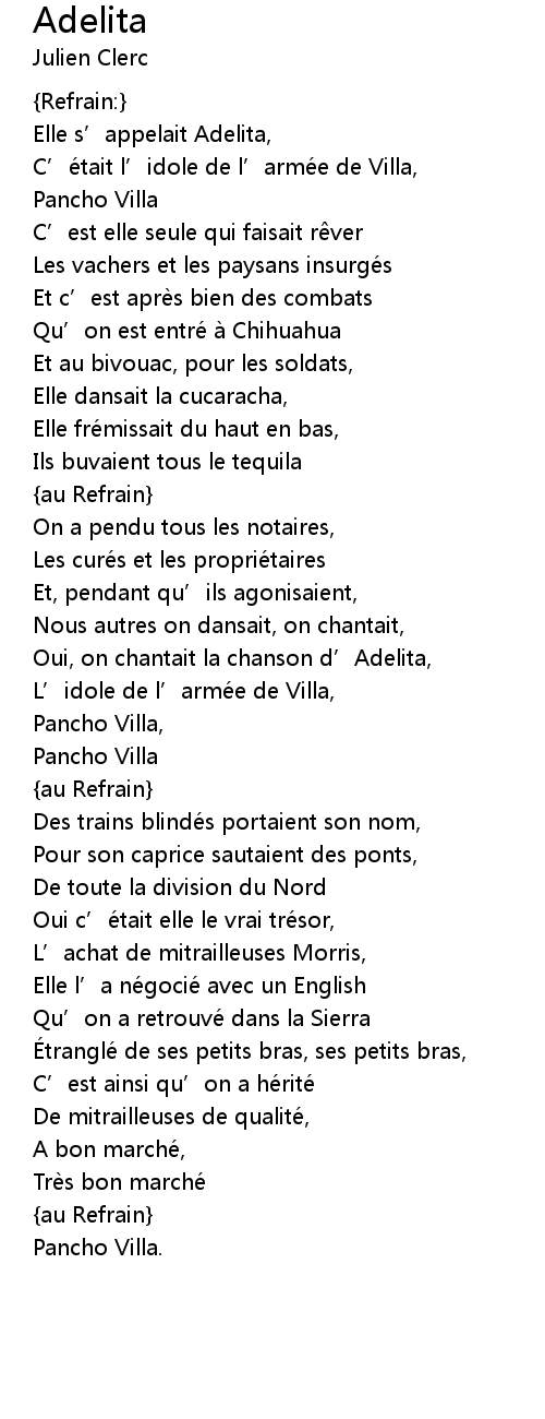 | Oui, on chantait la chanson d' Adelita, | |