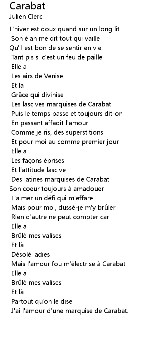 | J' ai l' amour d' une marquise de Carabat. |