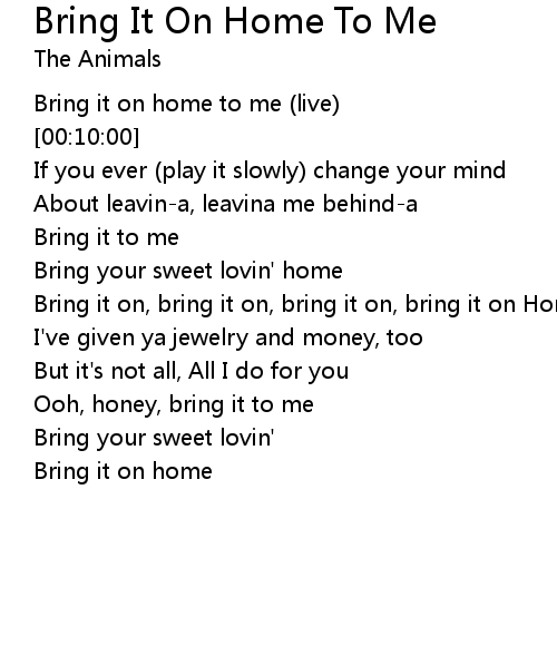| [01:22.00] | Bring it on, bring it on, bring it on, bring it on Home to me |