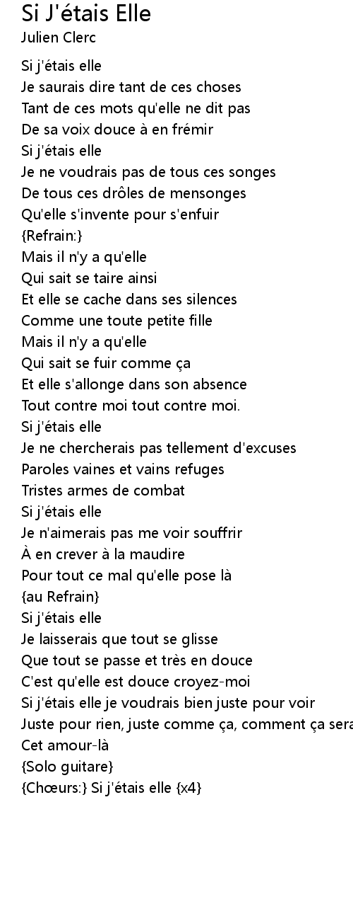 | {Chœurs:} Si j'étais elle {x4} |